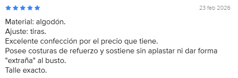 🖤 Diseño cómodo que sostiene el pecho sin incomodar.
