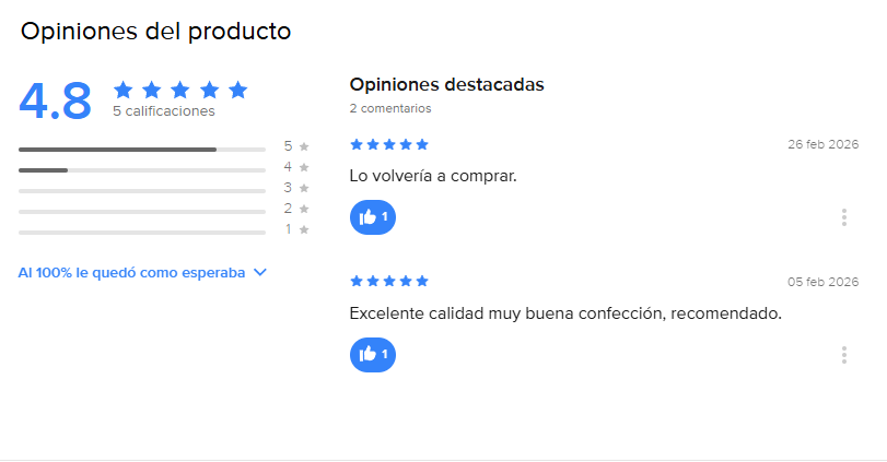 💖 “Excelente calidad, muy buena confección. Recomendado.”